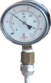 Efecto Venturi: Es una consecuencia de la ecuación de Bernoulli; el color es más azulado cuando hay más presión, tal como se obserba en el manómetro de la izquierda. Autor: Thierry Dugnolle