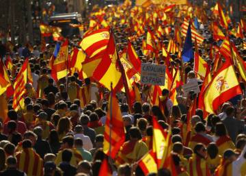 Las personas contrarias al independentismo salieron a la calle en una multitudinaria manifestación pro unidad que no se había visto nunca antes. Banderas constitucionales inundaron las calles de Barcelona en una demostración de fuerza que impresionó a todo el mundo. Al final, dos voces sobresalieron sobre las demás: la de Mario Vargas Llosa y la de Josep Borrel.
