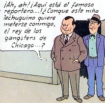 Tintín llega a Chicago con el propósito de acabar con el gansterismo y en especial con Al Capone durante los años de la ley seca. De banda en banda, el héroe vence uno a uno a todos los malos y hasta puede con los indios a quienes un gánster ha puesto en su contra. Sin embargo, con su buen corazón, Tintín les ceda un yacimiento de petróleo que encuentran por casualidad. Tras amarrar a todos con cuerdas, los entrega a la policía.