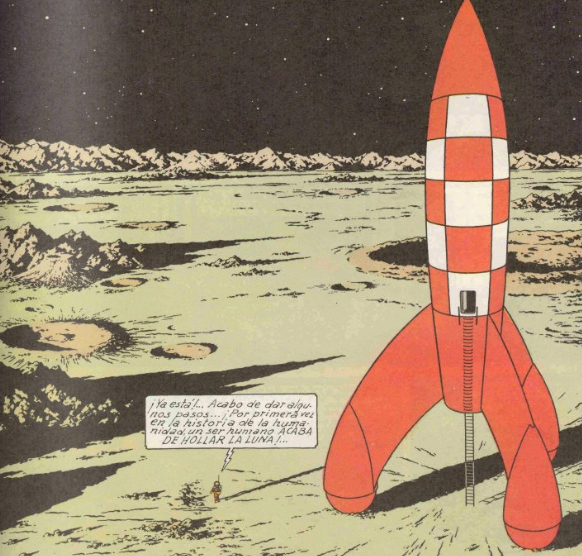 Hergé envió a Neil Armstrong un comic con una dedicatoria tras la gesta de conquistar la Luna. Ver más adelante.