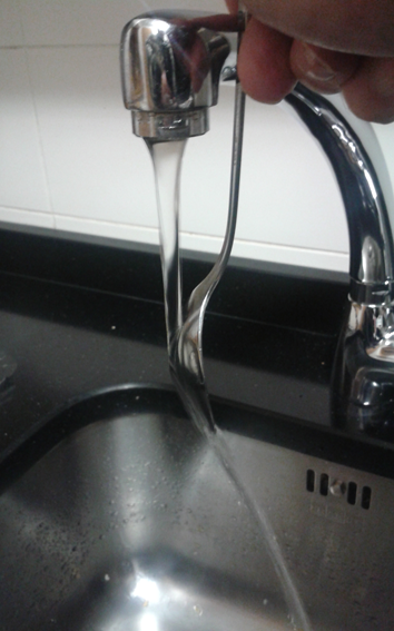 Efecto Venturi: Es una consecuencia de la ecuación de Bernoulli; el color es más azulado cuando hay más presión, tal como se obserba en el manómetro de la izquierda. Autor: Thierry Dugnolle